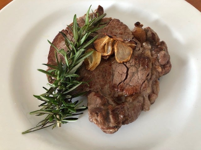 ローズマリーを添えステーキ肉を焼くと最高にいい香り!(盛り付け例)