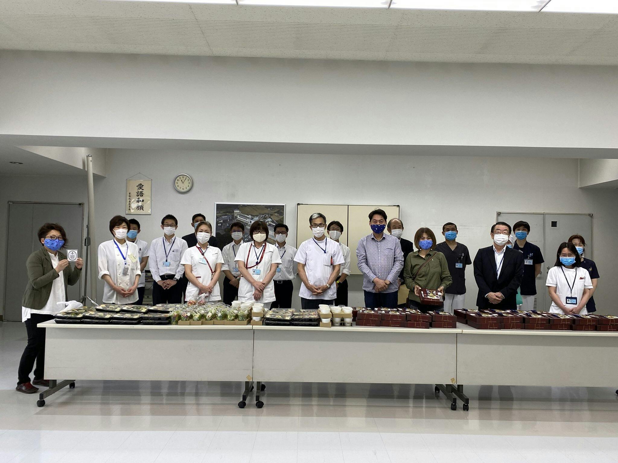 お弁当を並べていたら、どんどん職員の皆様が集まってきました。