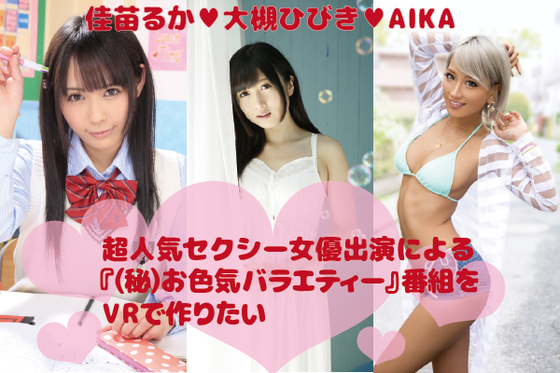 ⽬標額達成が前提条件となりますが、VRの特徴を活かして、セクシー⼥優と⼀緒に脱⾐ゲームに参戦しているような気分が体感できるVR向け動画コンテンツを制作します。