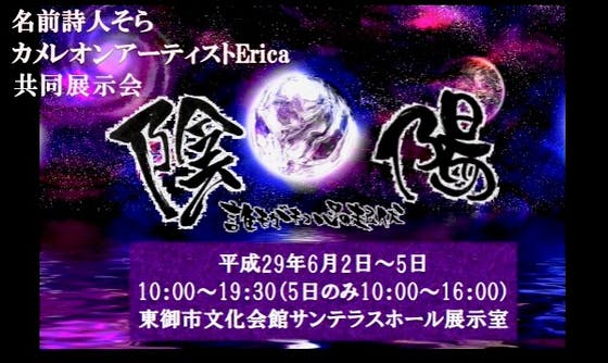2017/04/25 09:54初めまして!名前詩人そらです。 今回カメレオンアーティストEricaさんとのコラボ展に向けてこちらのプロジェクトを立てあげさせていただきました。 今回は『陰と陽』というテーマで作品を作っています。 普段あたしはなるべく暗くなりすぎないように詩を書いていました。 しかし、根はネガティヴなので当然、どろどろした感情もあります。 今回はその陰の部分を作品に込めるという新境地です。 それが、良い悪いではなく。。友達に今度こんなコラボ展をするんだーと話した時に、 今までのあなたの人生を伝える事で絶対共感したり、救われる人がいる。 と言ってもらい、なるほど。出してもいいんだ。と思いました。 きっと、恥ずかしいとか暗いとかで、今まで隠してきたんです。 そんないろんな思いをいろんな形で伝える新しい作品を楽しみにいていただけたらと思います。 もちろん、コラボ展開催期間は、名前詩の即興もやりますよー!! たくさんの方のご支援お待ちしています!! 二人の面白い世界観に触れていただきたいです!!! みなさんに届く事、楽しみにしています! そら もっと見る