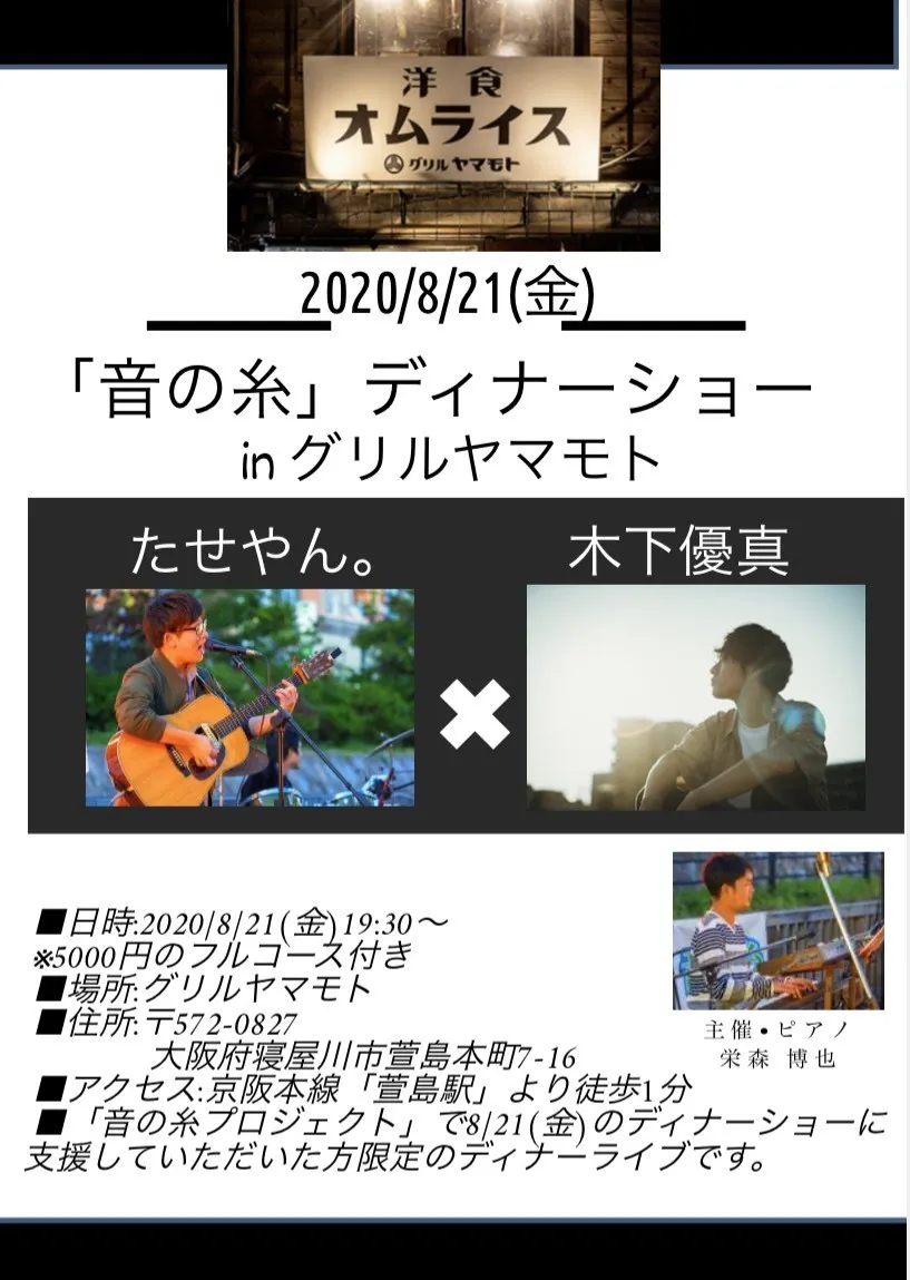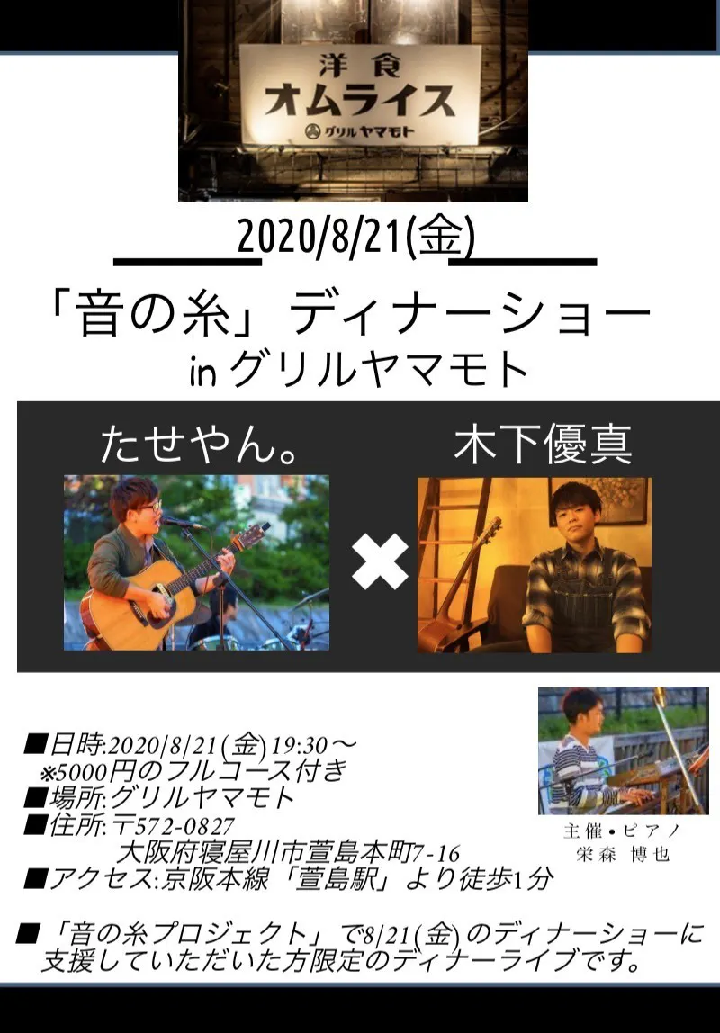 《8/21(金)たせやん×木下優真 ディナーライブの詳細》