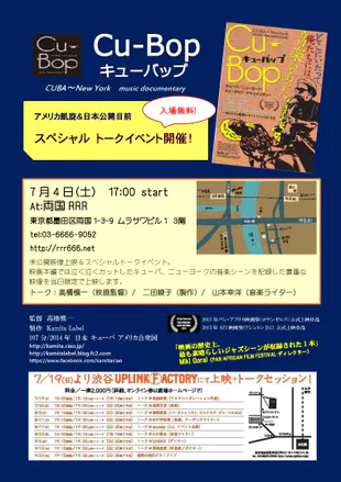 高橋です。ワシントンから無事帰国した翌日から、7月からの東京上映に向けて全力で動いています。作品が完成し、米国でのプレミア上映を終えたいま、次なる目標はこの日本で少しでも多くの方に『Cu-Bop』を観ていただくことです。渋谷での上映が終わる9月まで様々なイベントを開催し、映画を告知していこうと思います。