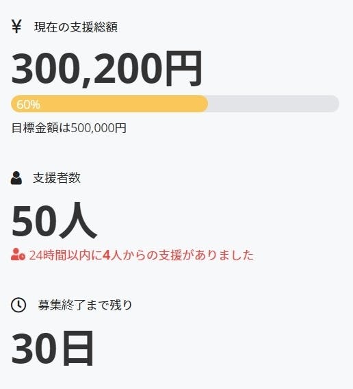 5日目で50人!たくさんの方々のご支援、どうもありがとうございます。