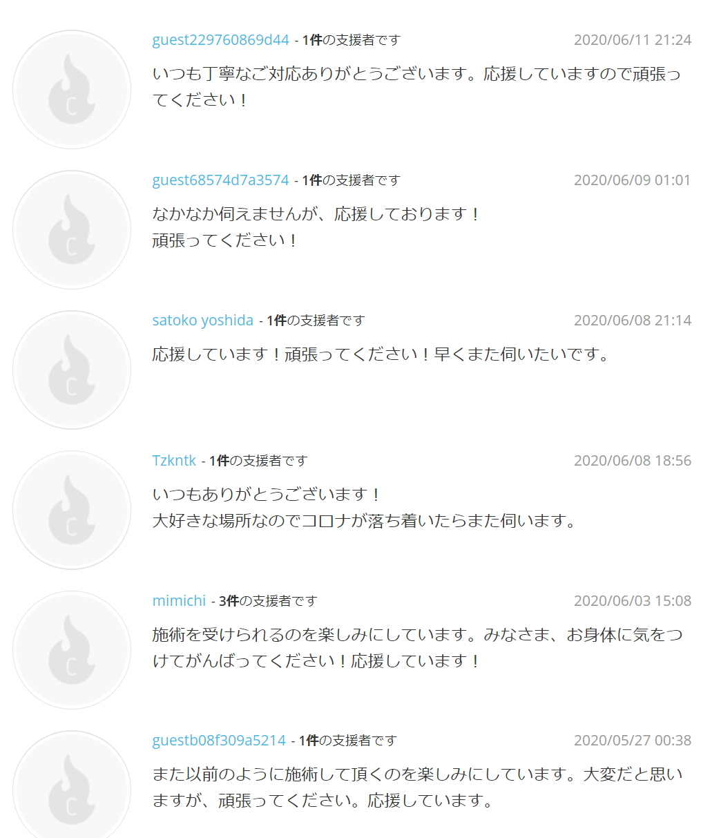 クラウドファンディング終了まであっという間に残り3日となりました。STEP3まで解除になり、「新しい生活様式」のもと、皆さん徐々に日常を取り戻していらっしゃるようですね。希翠もご新規様の受け入れもフェイシャルコースの施術も再開し、感染予防に配慮しながら営業しております。売上もすぐには戻らないと思いますが、今後私たちができることを工夫しながら皆様に少しでも癒しの時間を提供できるようスタッフ一同精進してまいります。残り3日ですが、少しでもご支援いただけたら嬉しいです!ご支援いただいた皆様、本当にありがとうございます!!お会いできるのを楽しみにしております!!