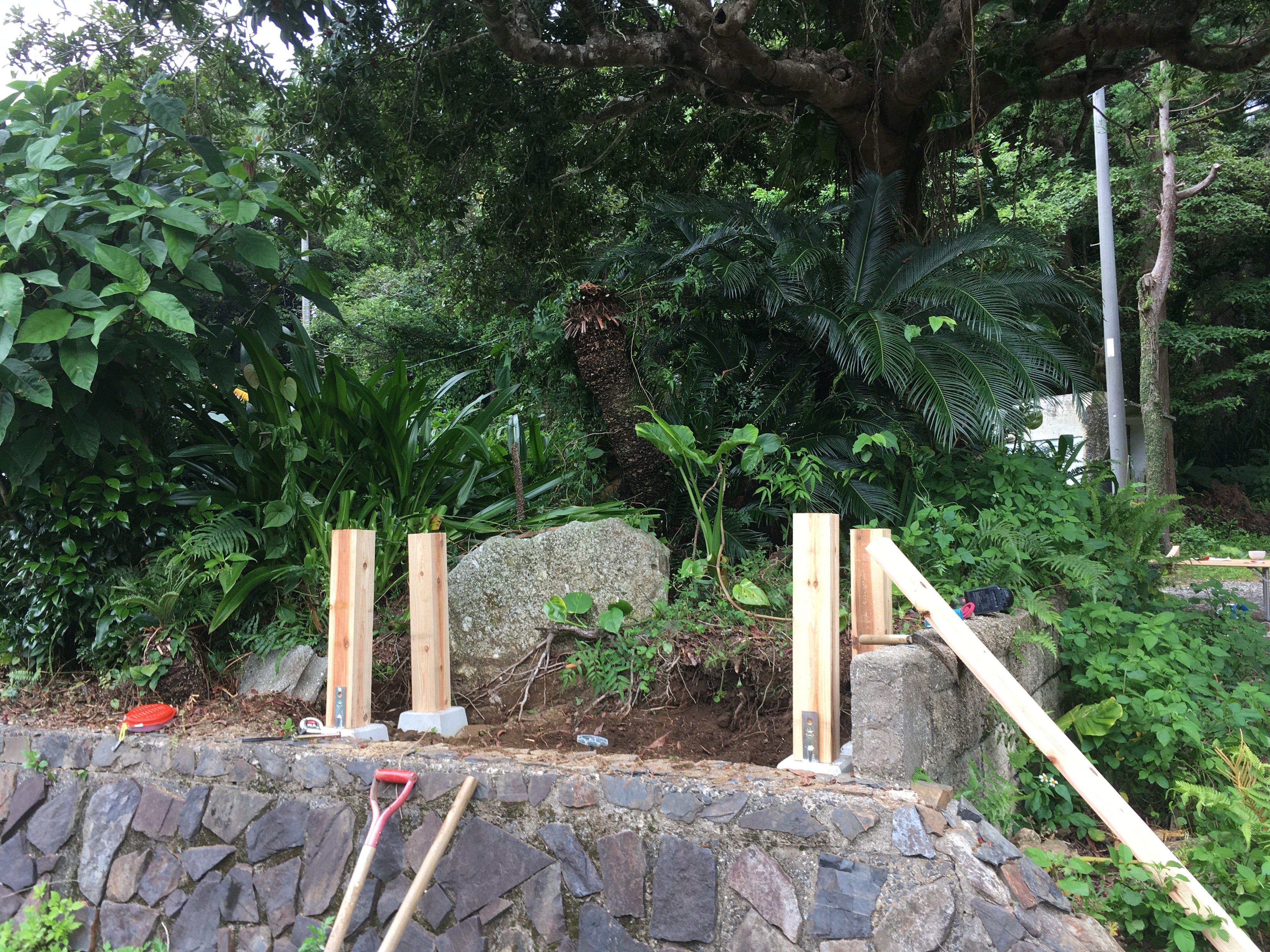 はい。自分で建ててます。 横幅を延ばすべく、基礎の修正をかけました。ここにロッカータイプの自販機を2基設置+水道を設置します。高さはたった600㎜ですが、柱を切った図です。作業中、ぽつぽつと山桃の実が降ってきます。。。 湿気を防ぐためにこれからモルタルで地面を固めますが、予め準備していたごろ石が足りなくなったので、近日追加作業をします。 今日は午前中からひと作業したところで雲行きが怪しくなり、ざーざー雨が降りました。まだ資材が足りていないので、追加調達をかけています。 6月1日に『ぽんたん館』が再開されるので、明日は 納品準備をしてからの作業になります。 ふるさと納税『さとふる』で『はじめてのコーヒー焙煎体験』と『カカオ豆からのピュアチョコレート制作体験』が掲載されました。こちらは先行予約としました。よければ覗いてみてください。https://www.satoiko.jp/index.php/businesses/detail/244 屋久島で皆さまにお会いできる日を楽しみにしています^^