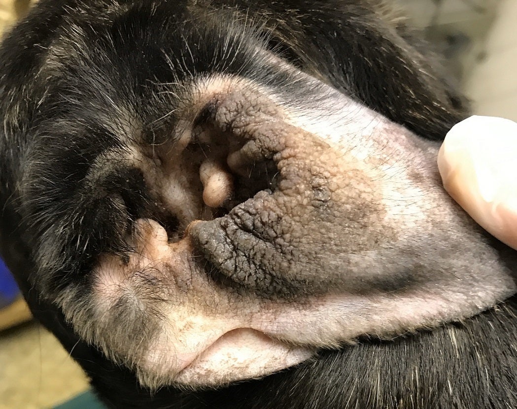 全身に噛まれたような多数の傷や床ずれができており、皮膚病、耳の炎症まであります。