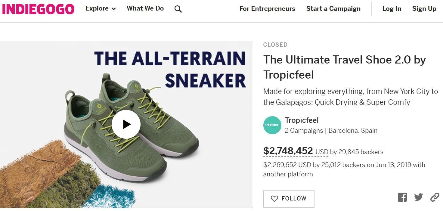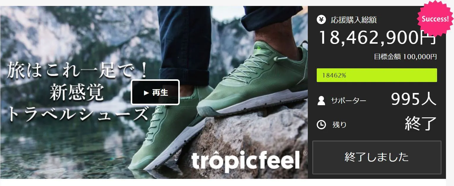 米国クラウドファンディングにおいて、Tropicfeelがシューズカテゴリーでは歴代1位の274万8452ドル(約3億円)の調達に成功しました。