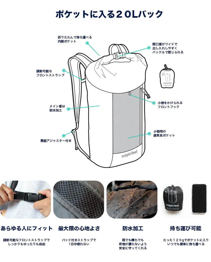 Tropicfeelの目的は、多機能性を持った革新的な商品を作り出し、毎日の生活をアドベンチャーに変えることです。