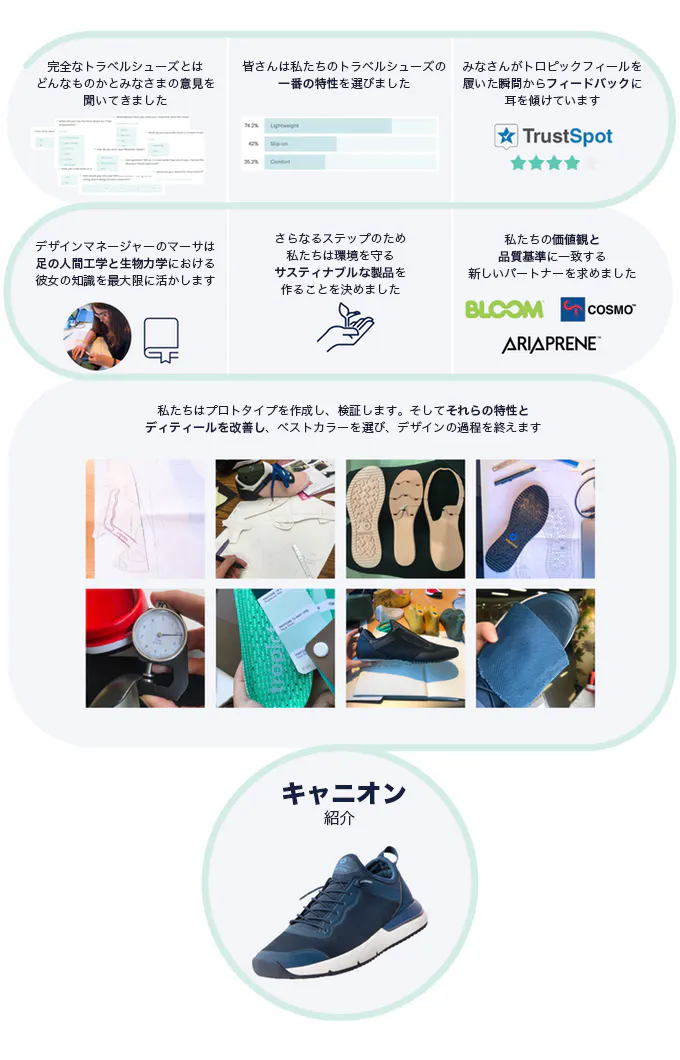 細かい部分までこだわり抜いた機能性。ユーザーの意見を聞き、トラベルシューズとして必要な特性を選びました。