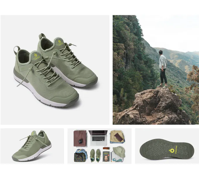 Tropicfeelは単によく売れる靴を作るのではなく、環境保護に貢献できる靴を作ることを目的としています。一足につき3.5本分のリサイクルペットボトルを3Dメッシュ素材に使用し、靴のアウトソール・インソールは藻の原料を活用し、包装紙にはプラスチックの代わりに木の原料を活用しています。