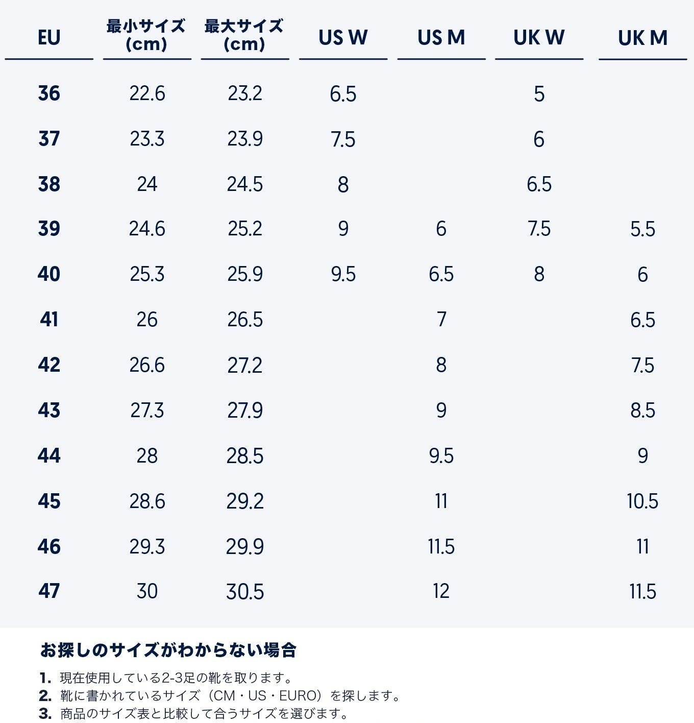 サイズ選択の際は是非参考にしてみてください。