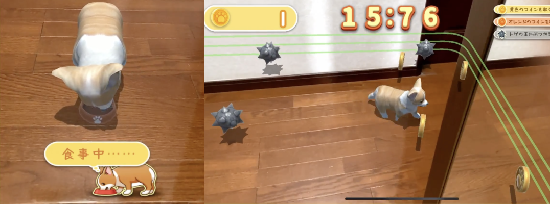 POCKET PETは、AR(拡張現実)によって現実とバーチャルをつなぎ合わせ、3DCGのリアルでかわいいコーギーと本当に暮らしているような気分を味わえるコーギー育成ゲームです。