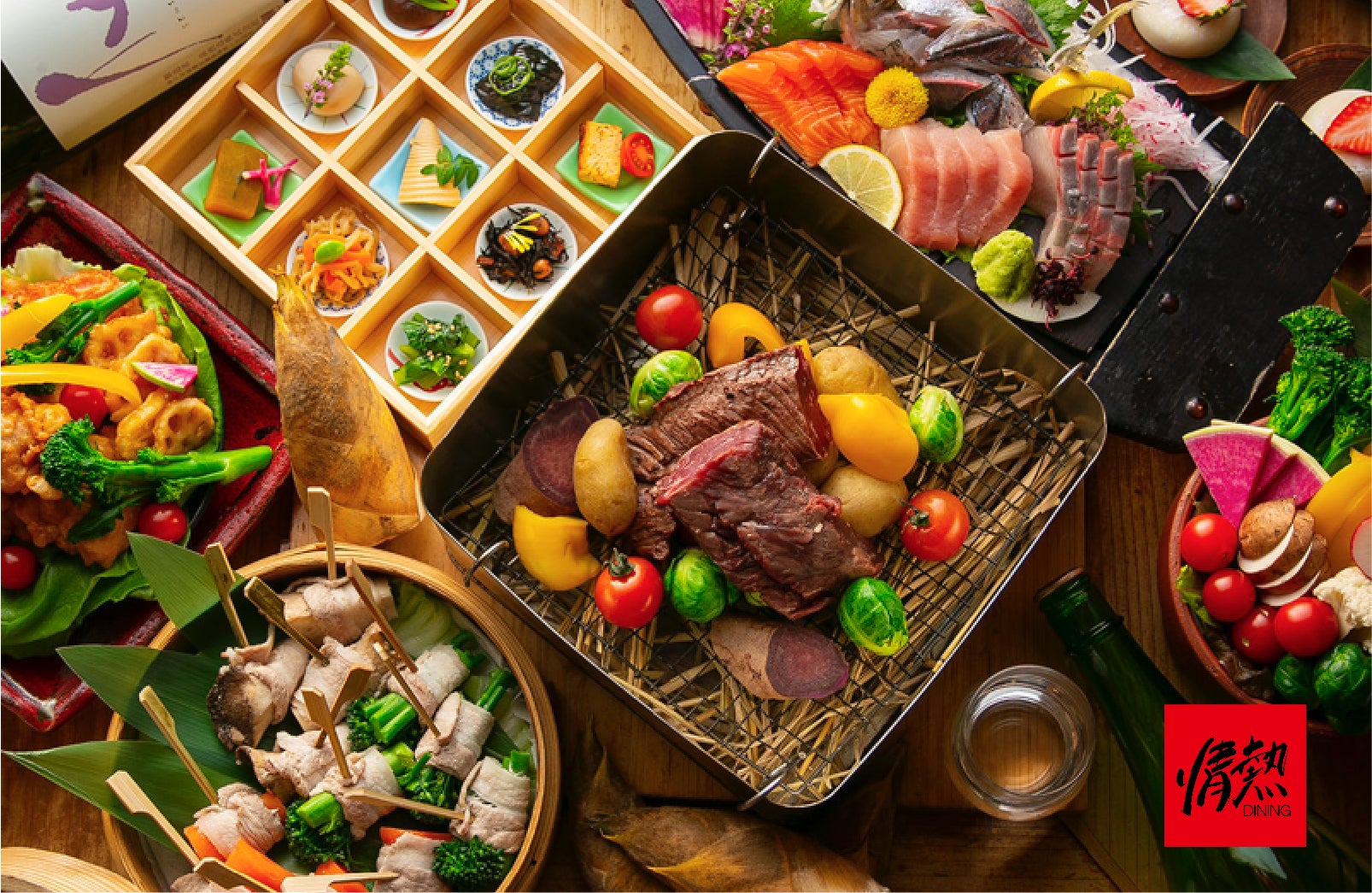 ケータリング事業では、地元生産者さんの、こだわり食材たっぷりの地産地食お弁当、オードブルを提供しています。また、この度、情熱ダイニング全店のコース料理が自宅や、オフィスで楽しめる、オンライン飲み会セットをご用意させていただきました。