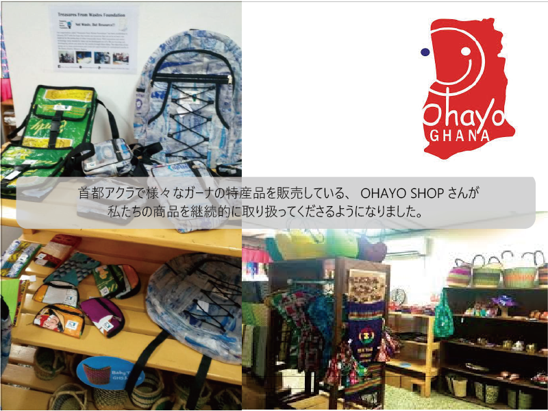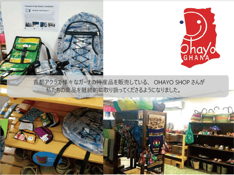 『OHAYO GHANA Foundation』さんは私たちの活動に共感してくださり、運営されているガーナの特産品を取り扱うお店『OHAYO SHOP』で商品を取り扱ってくださいました。