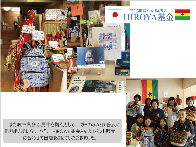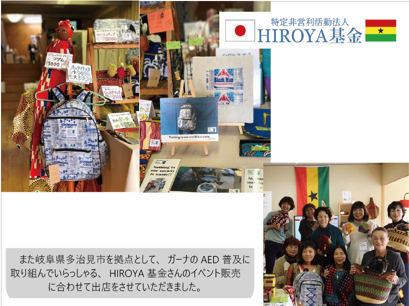 ガーナのAED普及のために活動されている『HIROYA基金』さんは、イベントでの販売の際にいつもお声がけくださり出店の機会をくださいました。