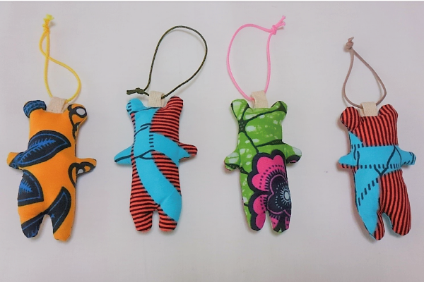 ガーナプリントファブリックで作ったクマのマスコットです。(大きさ:約10cm)