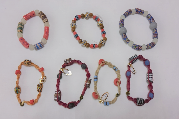 ◎ブレスレット : 1,300円 ガーナのクロボで作られた手作りビーズのブレスレットです。一つとして同じものはありません。