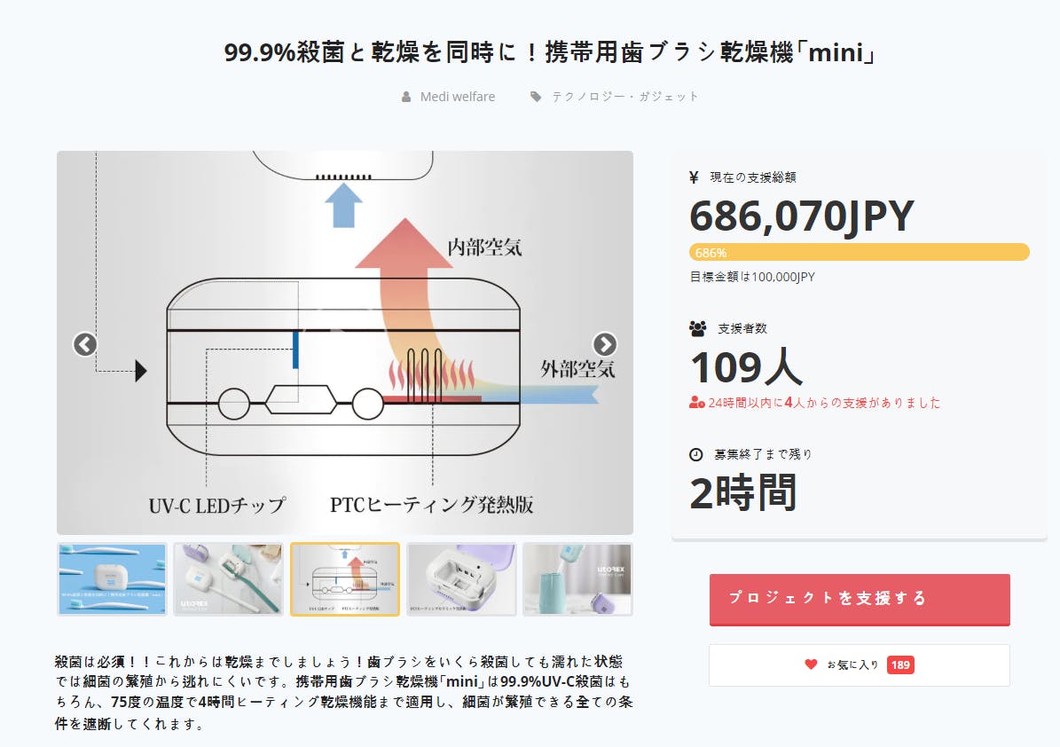 2日後に募集を終了します。 UV-C殺菌と乾燥をした歯ブラシは、99.9%の細菌が発生しません。