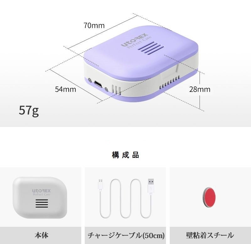 [本体・チャージケーブル(50cm)・壁粘着スチール]