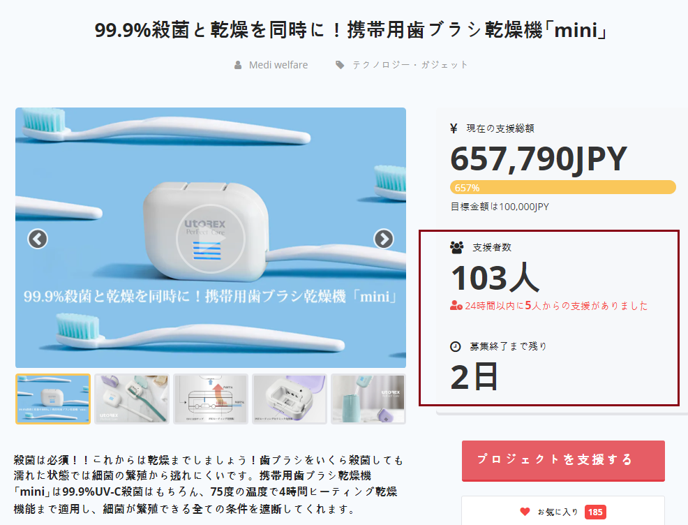 2日後に募集を終了します。 UV-C殺菌と乾燥をした歯ブラシは、99.9%の細菌が発生しません。