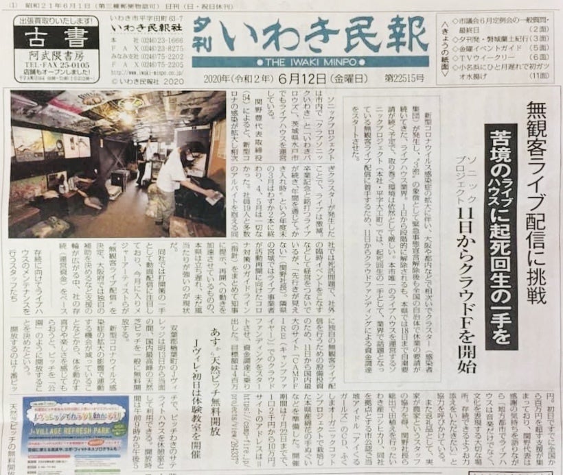 そして、先日のいわき民報さんにクラウドファンディングの記事を掲載していただきました!