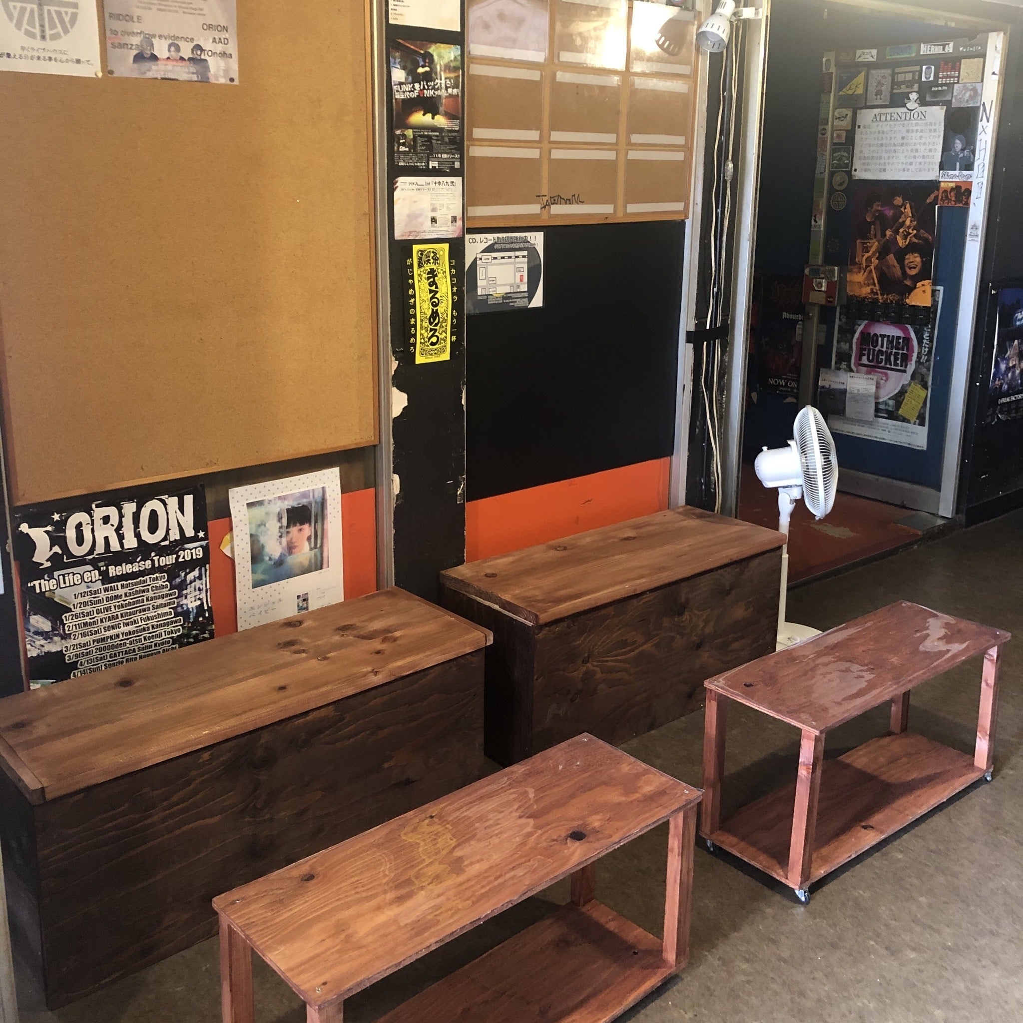 通常、写真のバックの所はライブスケジュールのポスターやチラシで埋め尽くされている場所。