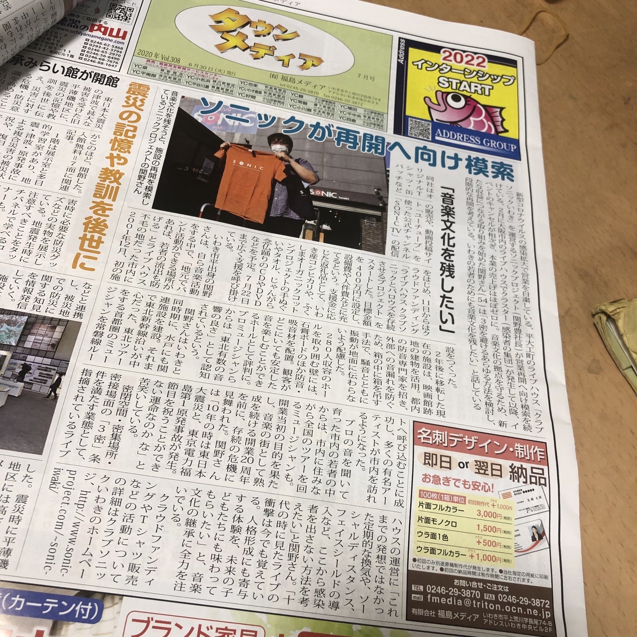 本日の写真は「タウンメディア」に掲載されたソニックの記事です。
