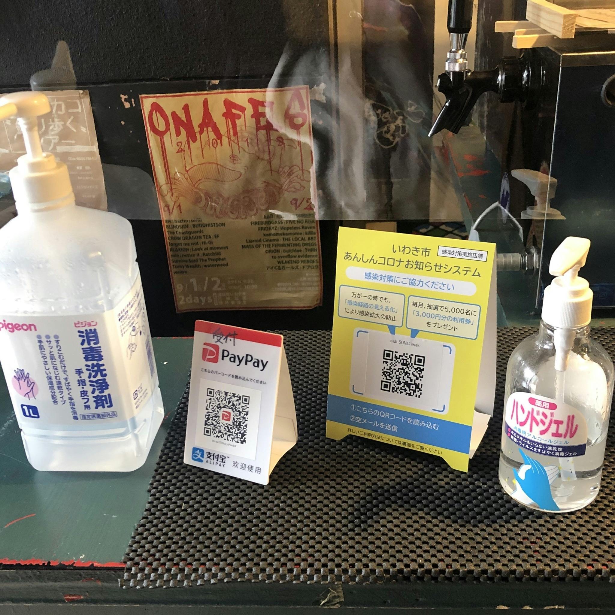 クラブソニックいわきでは、飛沫防止の受付ビニール、手指消毒薬品、感染お知らせシステムに、紙幣硬貨をできるだけ使用しないためにPayPayなど。