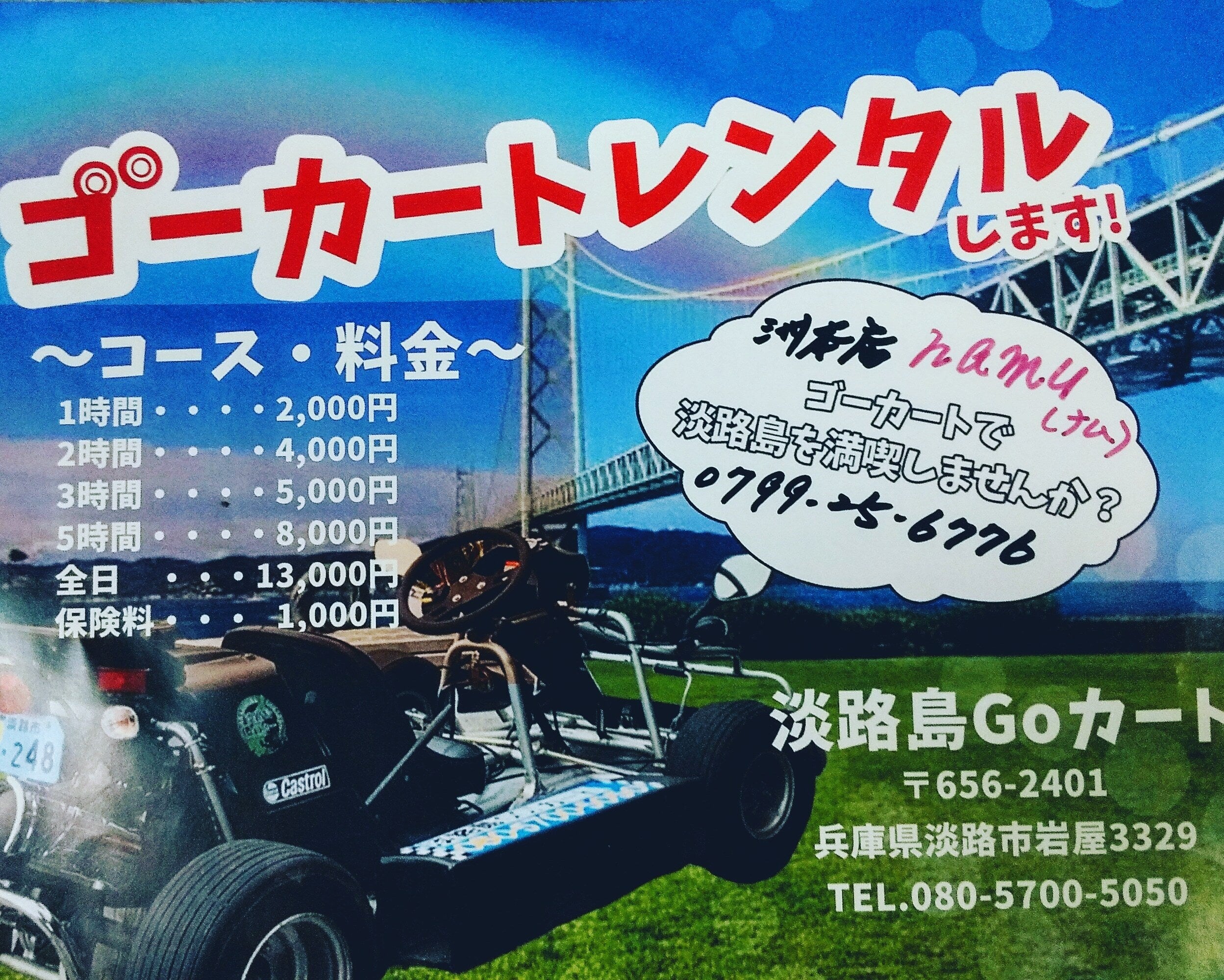 皆様のご支援のお陰で新たにゴーカートレンタルのビジネスを開始する事が出来ました。淡路島の魅力を肌で感じて頂けます!!namu特別割引は1000円とさせて頂きます。お店の危機は乗り切れましたので本当に感謝しております。後は、namuの未来を考えお客様により良いサービスが出来る様にお得な商品券や自家製キムチ、玉ねぎをご購入して頂ければ幸いと思っております。未来を見つめ、お客様にとって、もっと、もっとより良いお店にして行く様、尽力致しますのでので、引き続きよろしくお願い致します。インスタグラムhttps://www.instagram.com/ awaji__namuFacebookhttps://www.facebook.com/namu7676/
