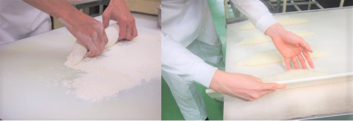 コンテストの優勝経験もある技術者の監督のもと、「きぬあかり」特有の水分をしっかりと閉じ込めるための最適な形へと成形しています。そして、高温・短時間での焼き上げ、独自技術の真空冷却により、歯切れのよいバリっとした皮ともっちりつややかな内層のバゲットに仕上がります。