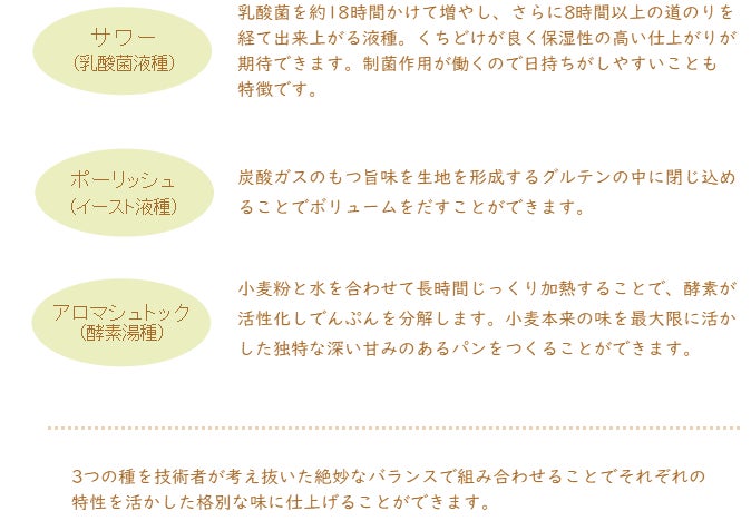 新製法を導入しました!小麦粉と水を混ぜ合わせ、じっくり時間をかけてつくるパンの種(たね)。酵素と酵母の自然の力で生まれる、より深い旨味が楽しめます。