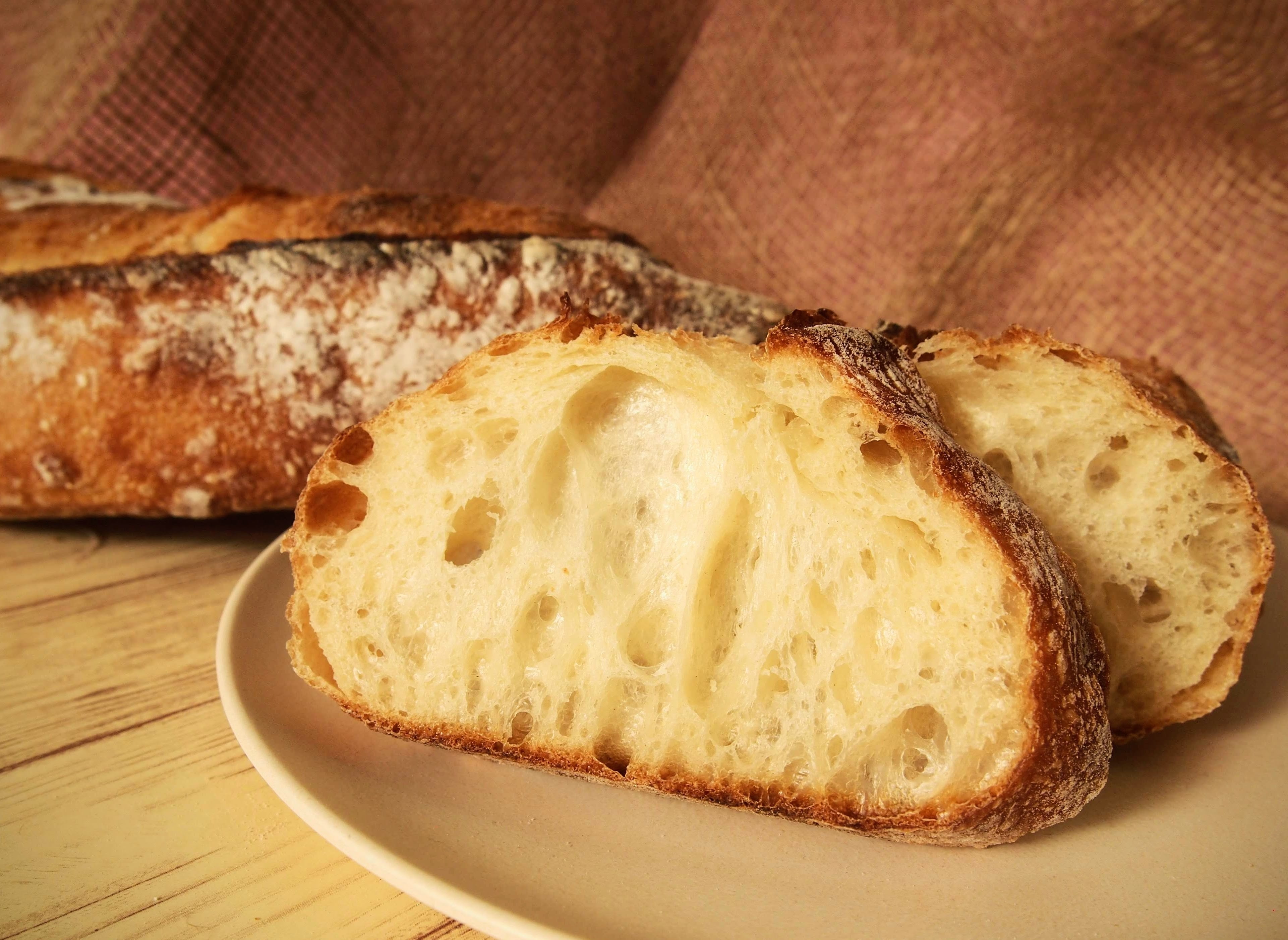 バゲットの断面:つややかで、もち感のある内層