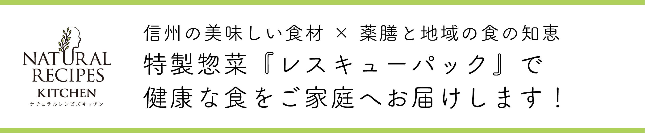 “食の知恵” は生きる術。『レスキューパック』には、食のヒントを添えてお届けいたします。このお惣菜を召し上がっていただいた方々が、後々何かの折にふと思い出し、お役に立ててくださったら嬉しく思います。そしていつしか、季節の影響や体調の変化に合わせて食材を選択し、ご自身で体調を整えることを、極自然な暮らしの営みとして生活に取り入れてくださる方々の輪が、ご家族やご友人、そして未来を担う子どもたちへと広がっていくことを願ってやみません。
