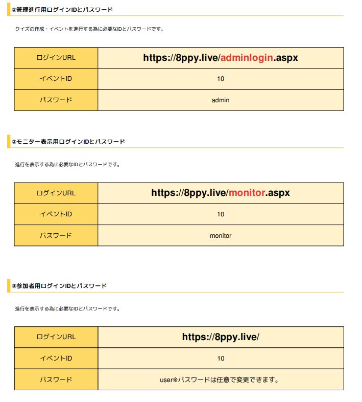 モニター表示用URL:https://8ppy.live/monitorlogin.aspx