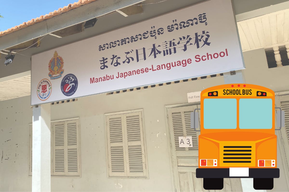 また、孤児院の子ども達がバスに乗り、まなぶ日本語学校に通い、上級生の子ども達と一緒に勉強する環境を提供すること。