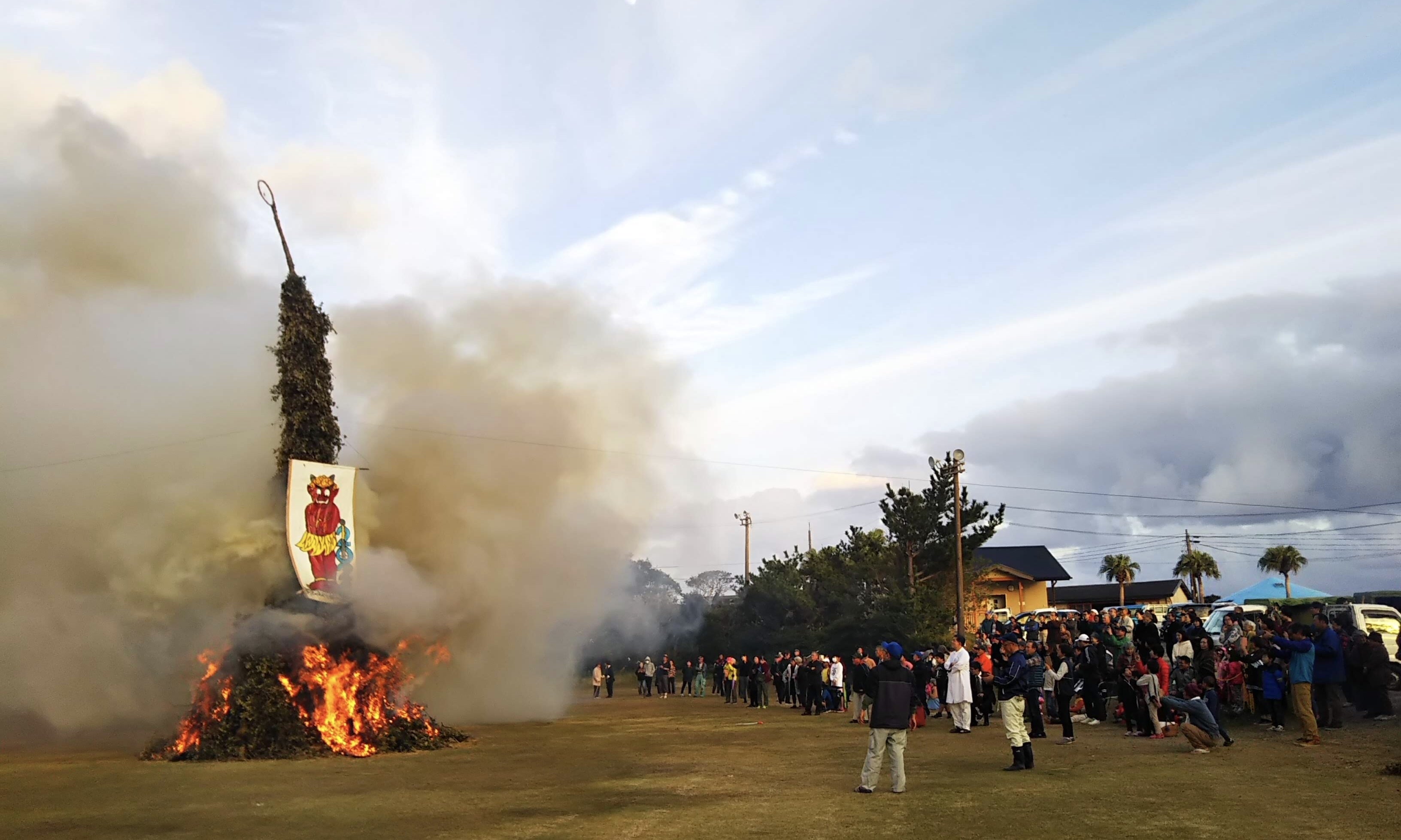 「無病息災・疫病退散を願う正月行事・鬼火焚き」©しまりす村