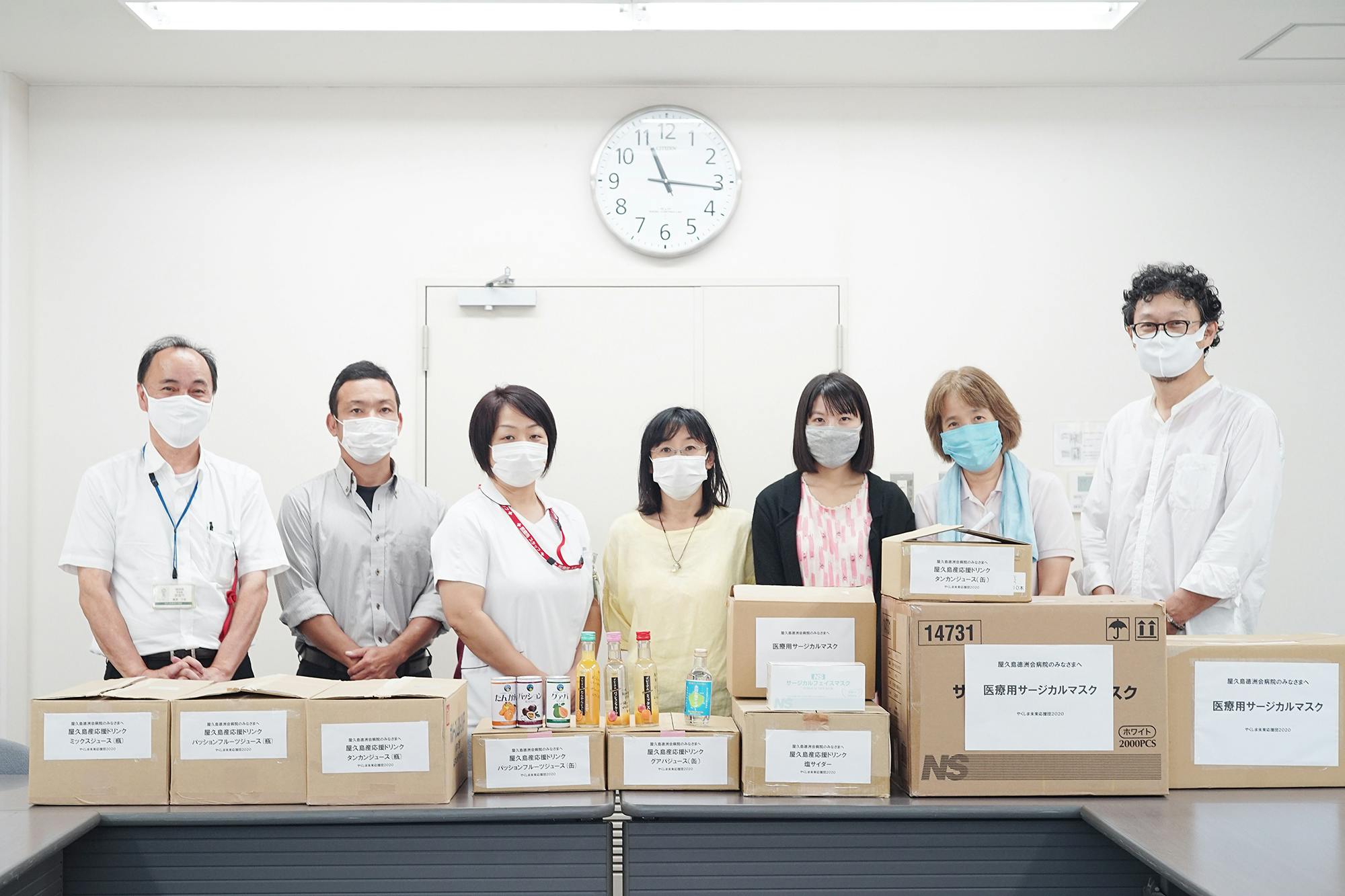 • 【活動報告⑦ 医療へエール、再び!】地元屋久島徳洲会病院へ、医療用マスク3000枚と屋久島産応援ドリンク250本をお贈りしました。 2020.9.16~日頃からの感謝とコロナ感染予防へエールの気持ちを込めて~クラウドファンディングで医療へエールのため上乗せ支援いただいたうち、20万円相当分の医療用サージカルマスクと屋久島産ドリンク(タンカン・パッション・グアバ・ミックス・塩サイダー)に応援メッセージを手書きして、お贈りしました。屋久島の医療機関は、離島の限られた人材と設備、いつ新型コロナ感染が広がってもおかしくない。そんな中、屋久島島民の健康を守ってくれる屋久島徳洲会病院にエール!【屋久島徳洲会病院】https://www.yakushimatokushukai.com/屋久島産応援ドリンクとは・・・屋久島産ドリンク(タンカン・グアバ・パッションフルーツ・ミックスジュース・塩サイダー)に、応援団や店舗さん他メンバーで、一本一本応援メッセージを書き込みました。忙しい医療従事者の方に飲みやすいドリンクを、意外と知らない(?)地元屋久島産ジュースに、「いつもありがとう、がんばって」などなどのメッセージを添えて、職員の皆さんにお贈りしました。* * *また今後、鹿児島の医療機関にもエールをお贈りする予定で、調整中です。たくさんの上乗せ支援をありがとうございました!写真撮影協力:KODO CHIJIIWA     もっと見る