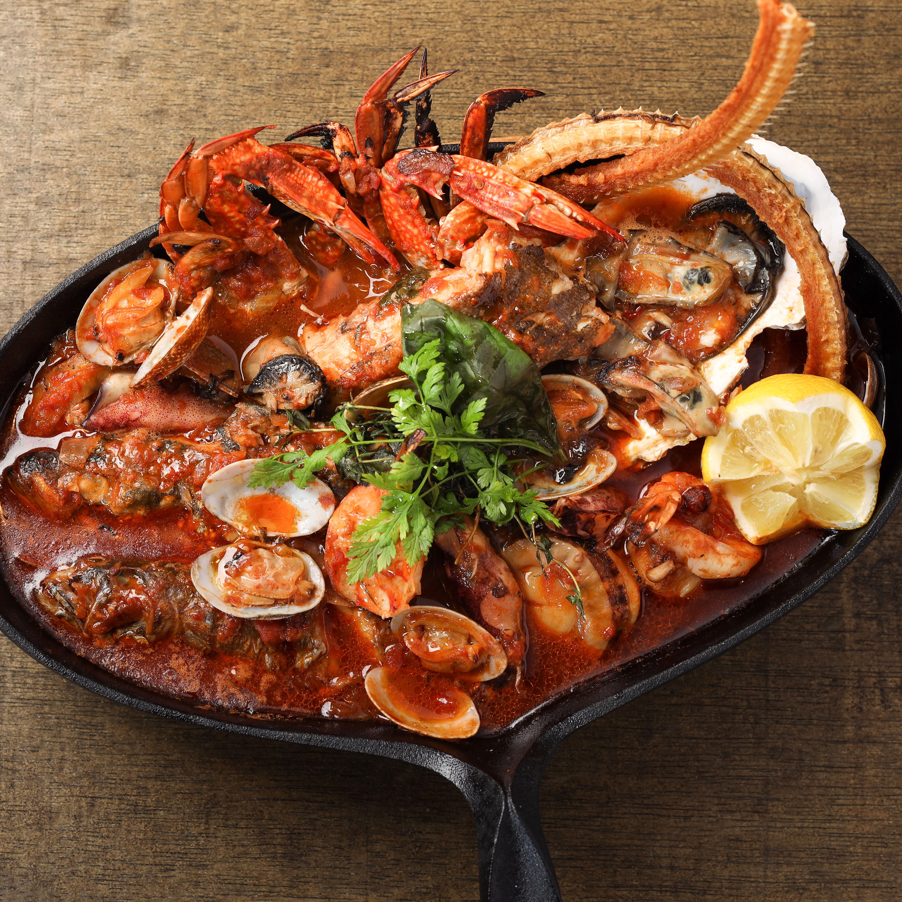 看板メニューの“”三陸チョッピーノ”は魚介の旨みが凝縮した漁師料理。
