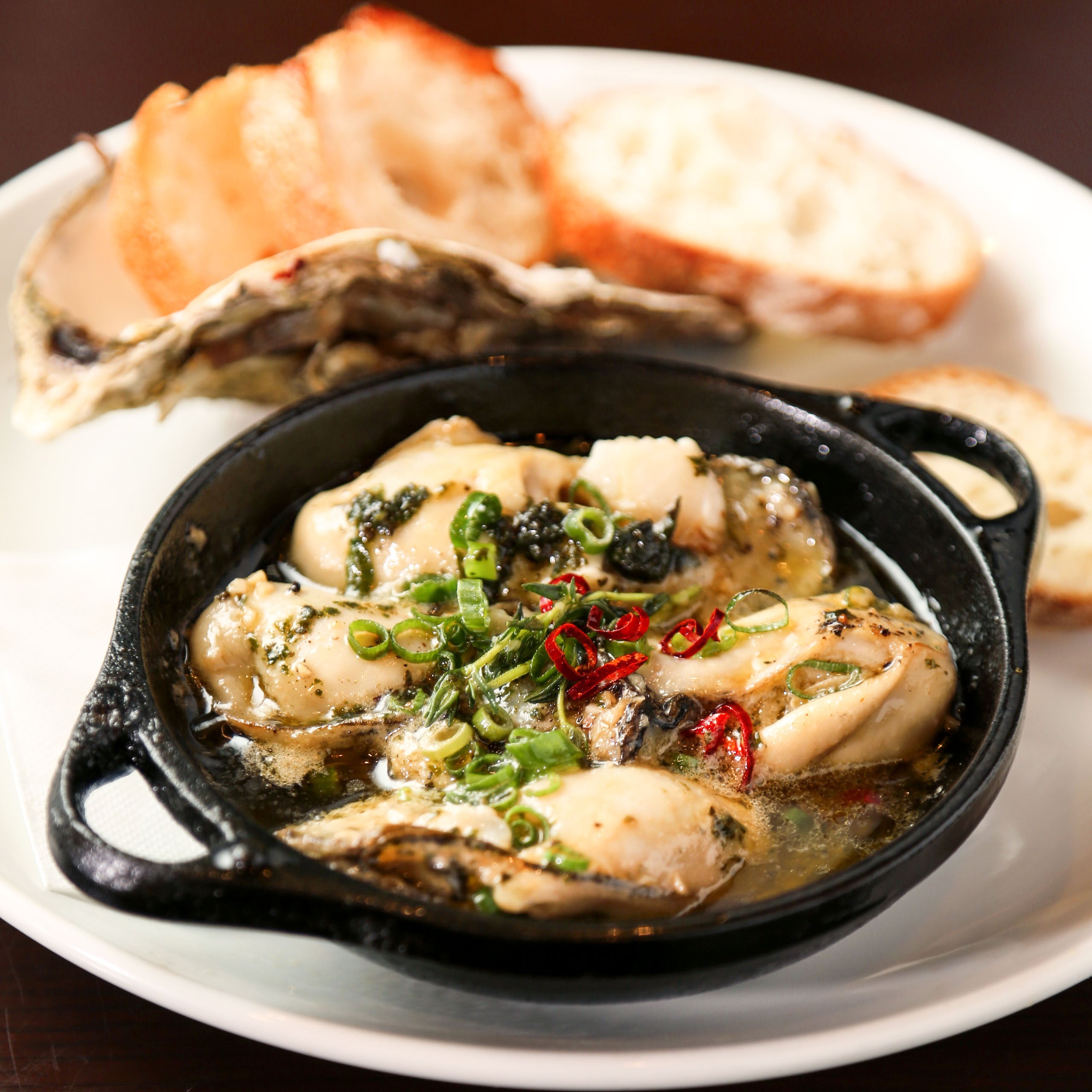 グツグツ音を立ててテーブルに!南部鉄器の牡蠣アヒージョ