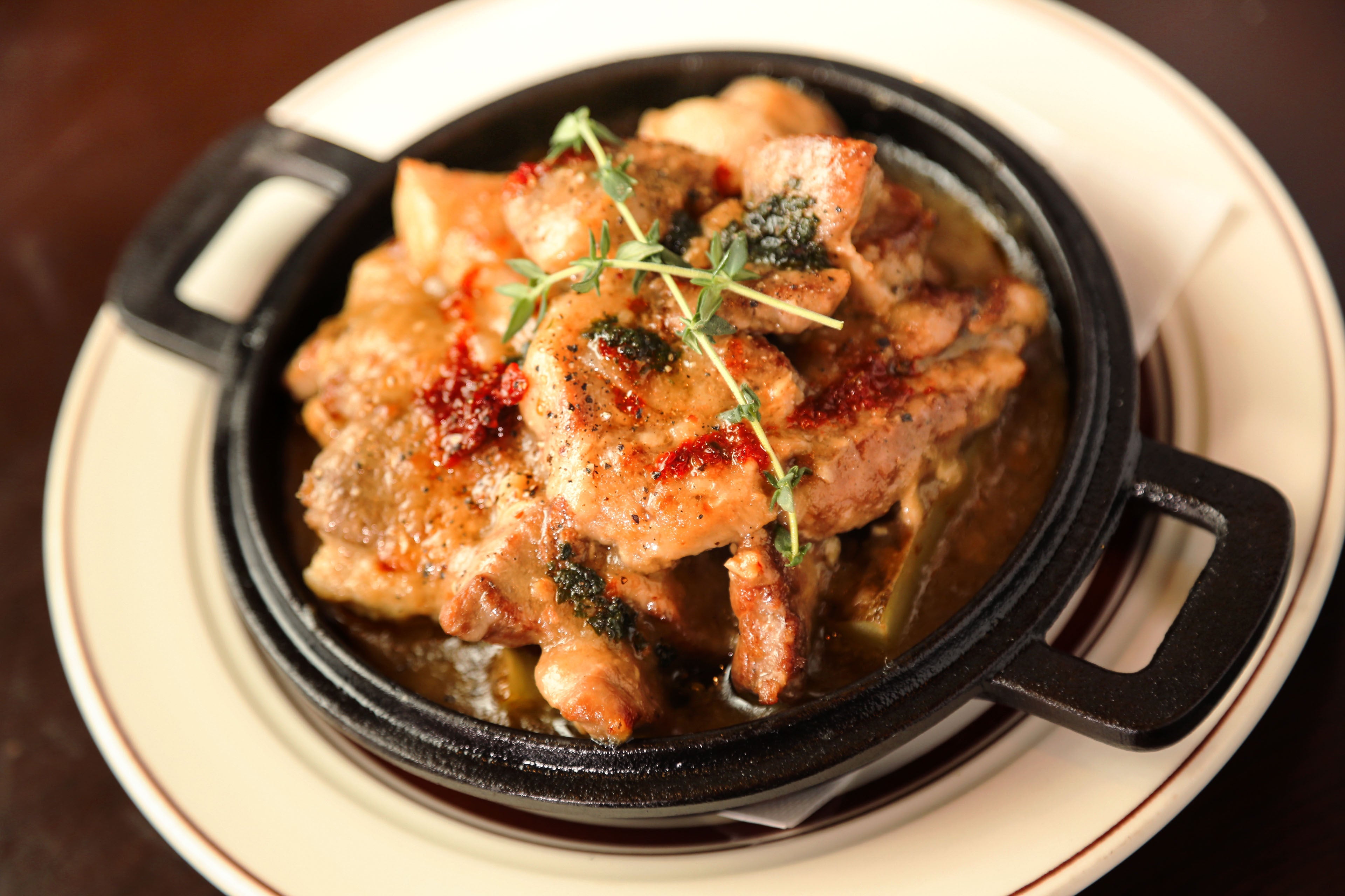 亀ヶ森シードルで煮込んだ三元豚は、定番の人気メニュー