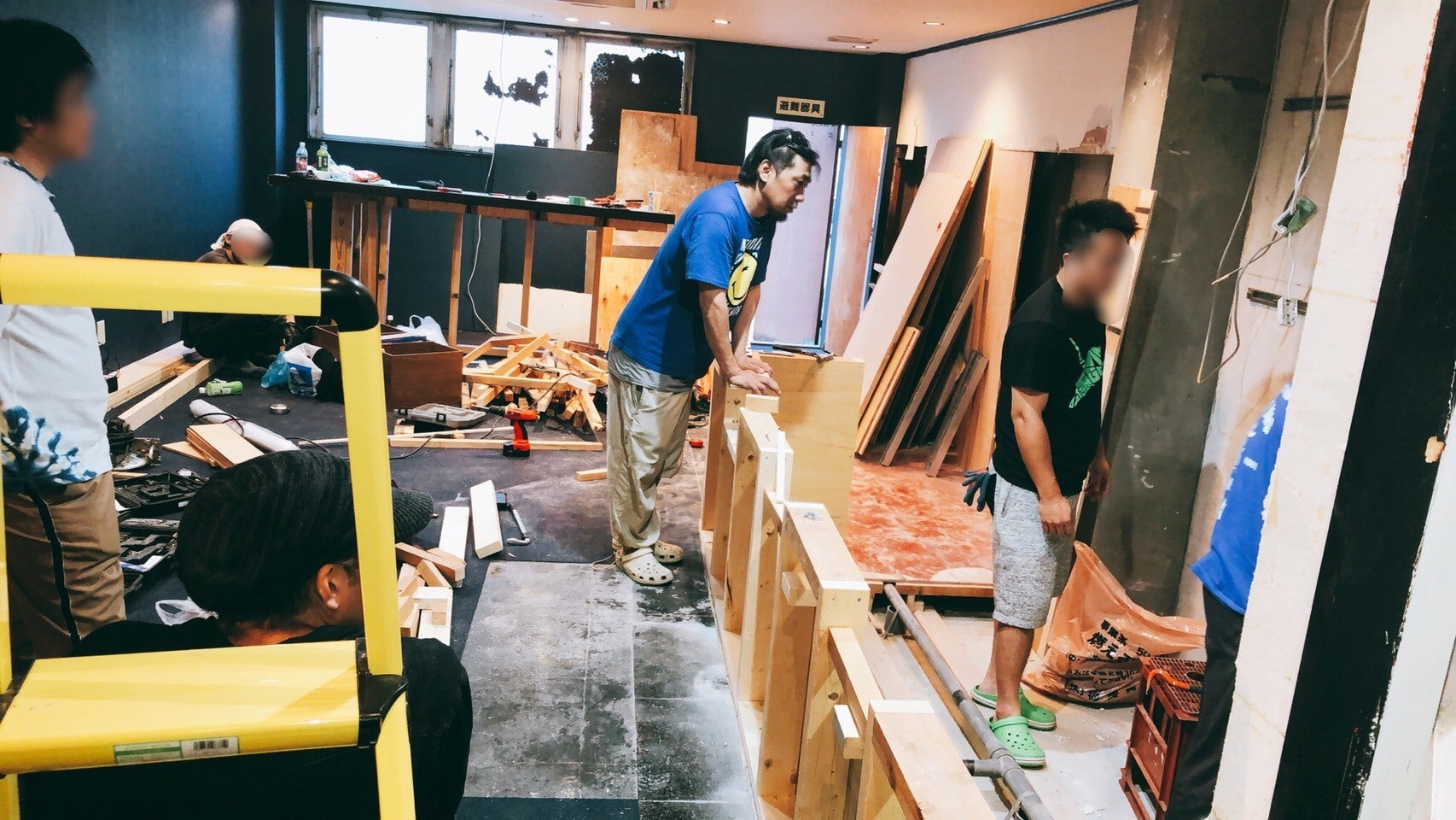 店長の六分儀や仲間と「いつかアニメ監督さんやゲームクリエイターさん、声優さんや業界の方をお呼びしてイベントしたいね」と夢を語りつつ、スケルトンの状態から手作りで作ったお店です。
