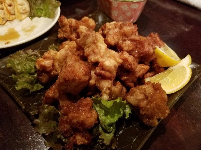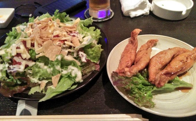 こちらは創業以来の名物メニューのタコライスと日替わりの鶏皮餃子。