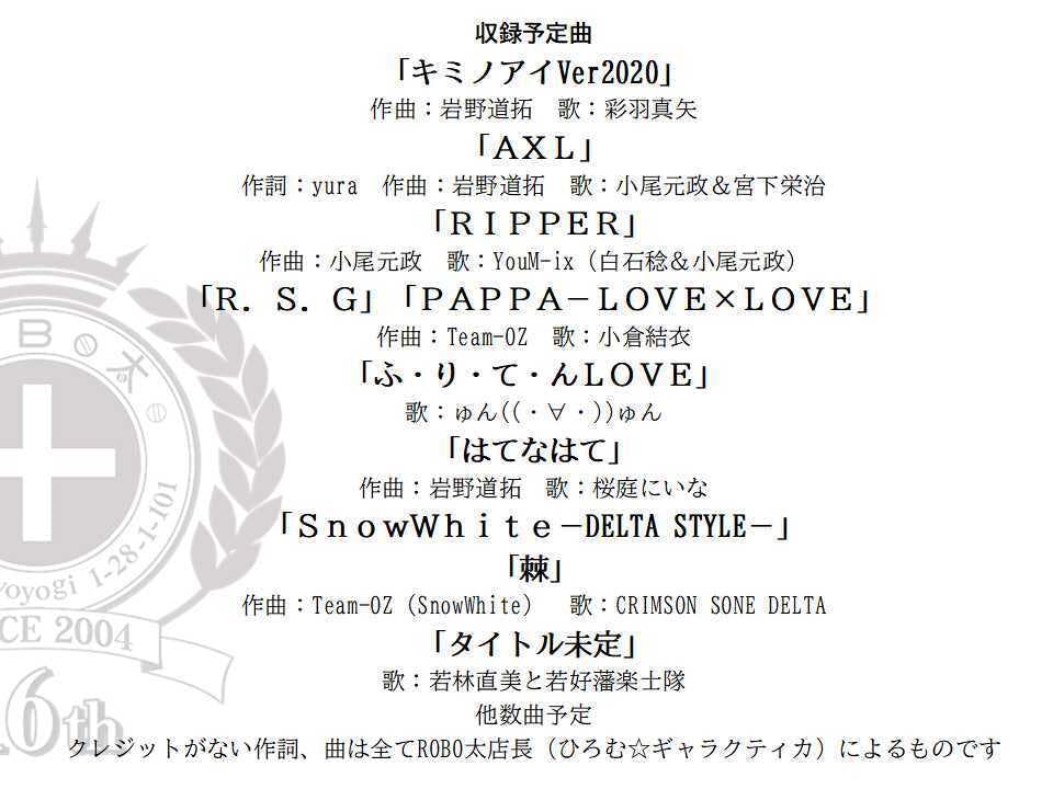 2012年に主催した演劇「激奏!三国志」のOP「AXL」も収録予定。