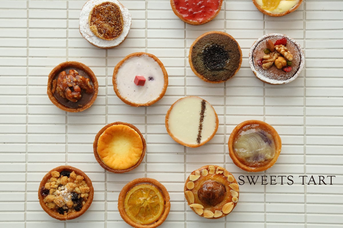 上品でほんのり甘い大人の味が楽しめる「スイーツタルト」。 小さなタルト生地の器に、おいしさをギュッと詰め込み、見ているだけでワクワクするタルトに仕上げました。色々なタルトを並べ、食べ比べてみてください。きっとお気に入りのタルトが見つかるはずです。直径63mmの型に、厚さわずか2mmのタルト生地を詰めるのは手仕事でなくてはできません。薄い生地の理由は、風味のじゃまをしないためです。季節の果実、木の実を混ぜたクリームを焼き上げたベイクドタルト。焼いた生地にムースなどを流し込んだレアなタルト。どちらも薄い生地をしっかりと焼いているから、サクサクの歯ざわりになります。タルトに詰めた世界観をたくさんの中から選ぶ楽しさも味わっていただけます。