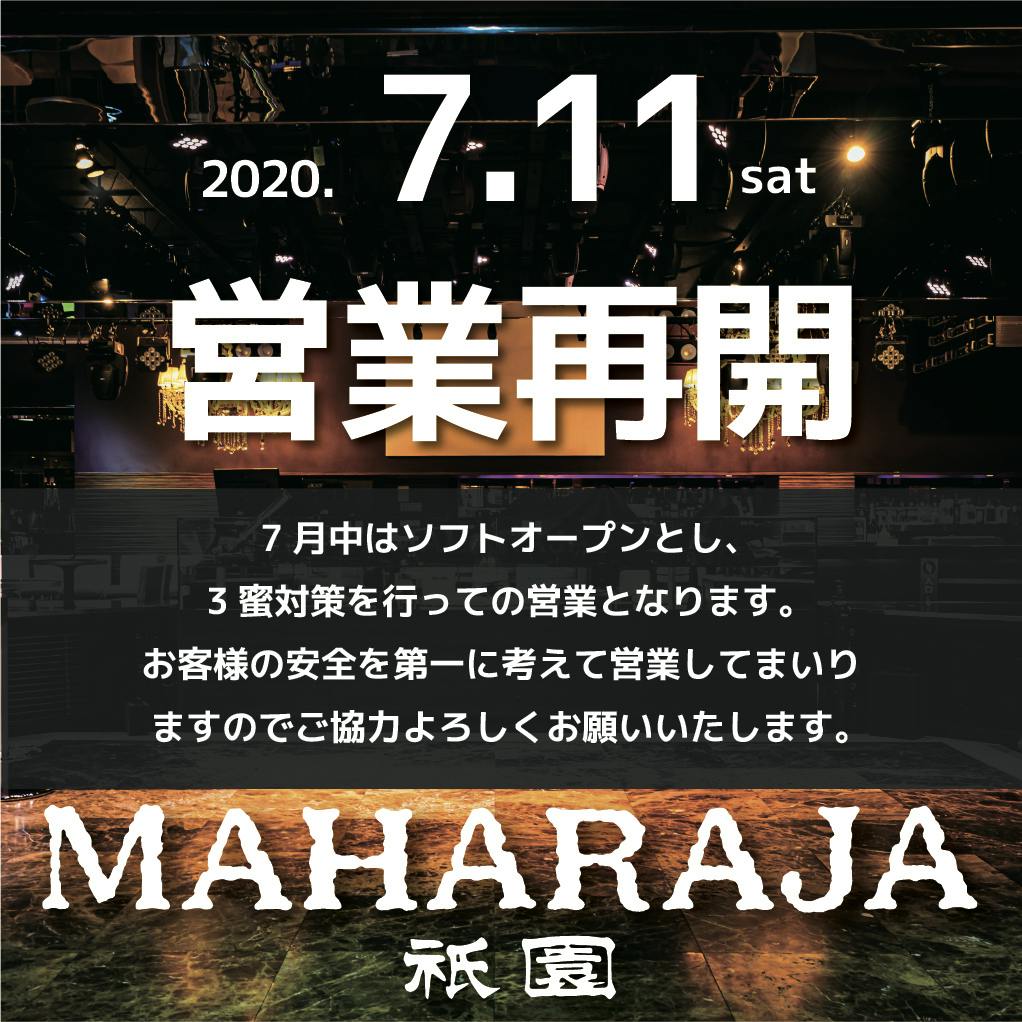 2020/07/01 21:487月11日土曜日 PM8:00 営業再開致しますマハラジャ祇園は7/11(sat)より営業を再開致します。皆様の応援のおかげで再開出来ますこと心より感謝致します。暫くはアフターコロナ禍、ソーシャルディスタンス禍で通常に戻るにはまだまだ時間がかかると予想されます。7月15日迄クラウドファンディング何卒引き続きのご支援を宜しくお願い致します。クラウドファンディングhttps://camp-fire.jp/projects/view/264946まずは、ご支援頂きました皆様に、7/11(sat)より営業を再開できます事を感謝致しご報告致します。 もっと見るネクストゴール300万円を目指しております!
