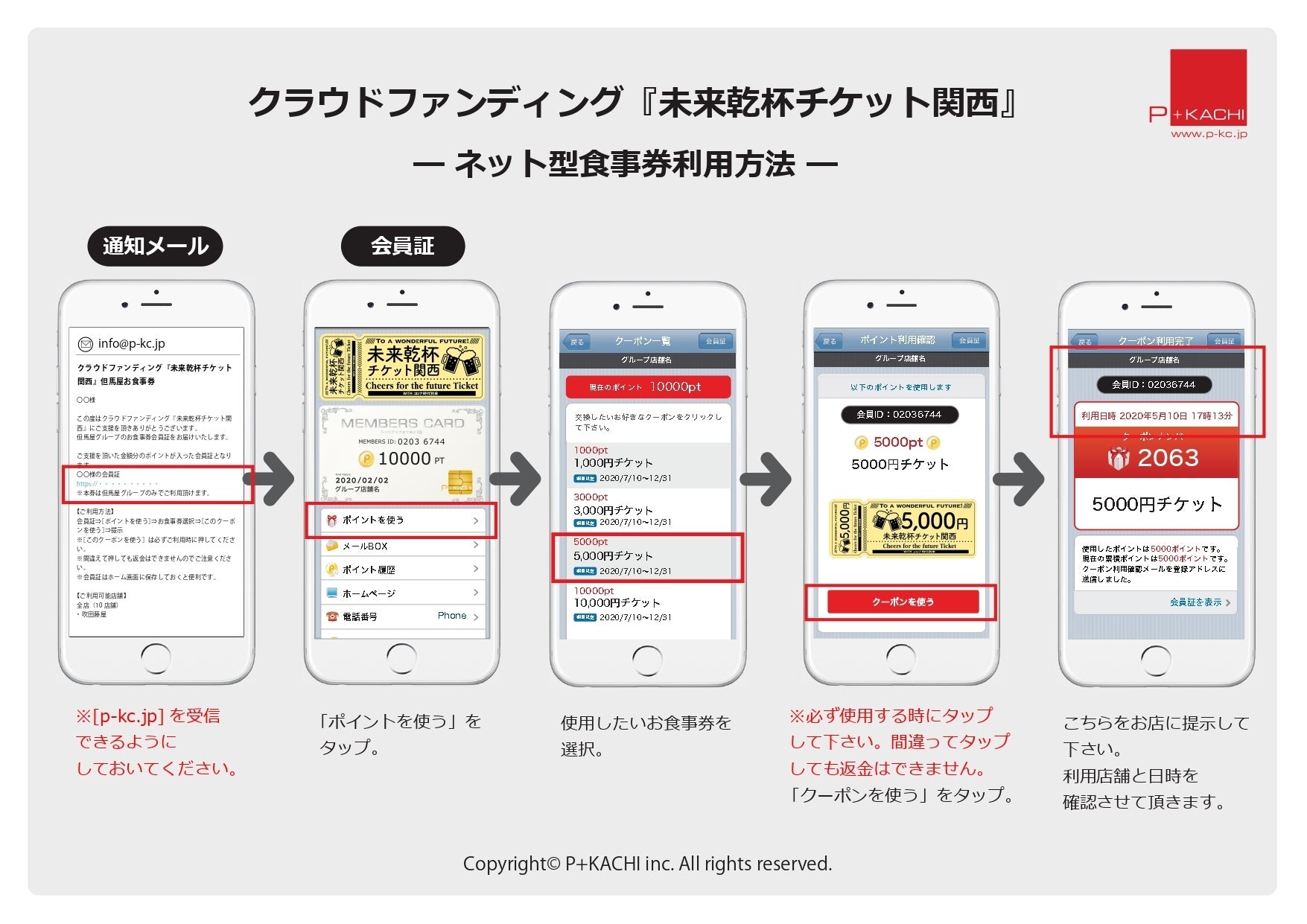①イベント終了後、お客様のご登録アドレスへ、食事券分のポイントの入ったWEB会員証をメールでお届けします。