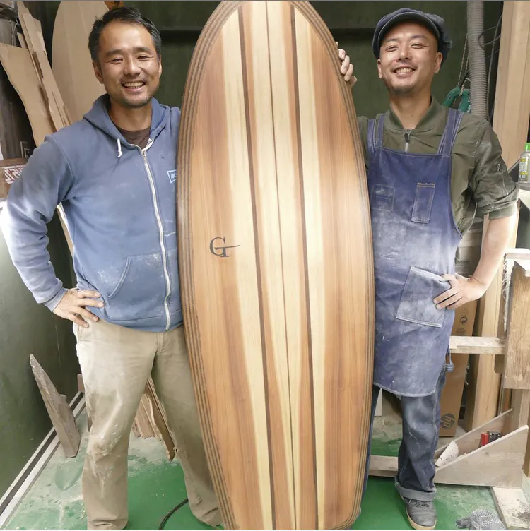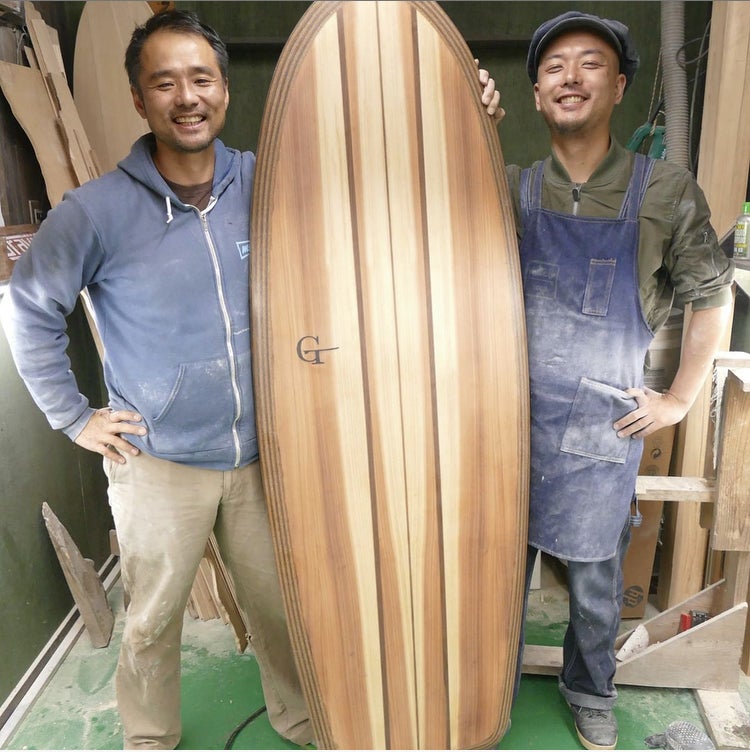 そんな10代、20代を過ごした経験から、今まで積み上げてきたことを一旦ゼロに戻して、やってみたいことをやろう、と思いました。その時出会ったのがウッドサーフボートビルダー(木製のサーフボードを作る人)の寺内元基(GT Designs 代表)さんにお願いして3ヶ月かけて一から教えてもらいました。ものづくりは小学生の図工ぶりで、苦手意識はなかったけど、決して得意だった記憶もありません。でもいざ手を動かしてみるとワクワクして面白くて仕方のない日々が始まりました。これだ!って。