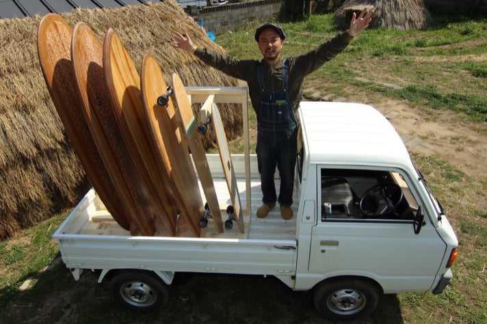 みなさん、はじめましての方もお久しぶりですの方も、数あるページからこのプロジェクトをご覧頂きありがとうございます。石川県羽咋市の工房を拠点に、「木」と「バランス」をテーマにものづくりをスタートして6年目。wooden seed(ウッデン シード) という屋号で創作活動をしている得田充です。 今回のプロジェクトは、いつもの羽咋市の室内工房で製作したスケートボードやバランスボードをただ郵送で届けるのではなく、軽トラックの荷台に”動く工房”を作って、「もの」を作りながら(届けながら)「想い」も一緒に届けたい、という内容です。さてさて、どんなのが出来るか?一緒に楽しんでもらえたら幸いです。