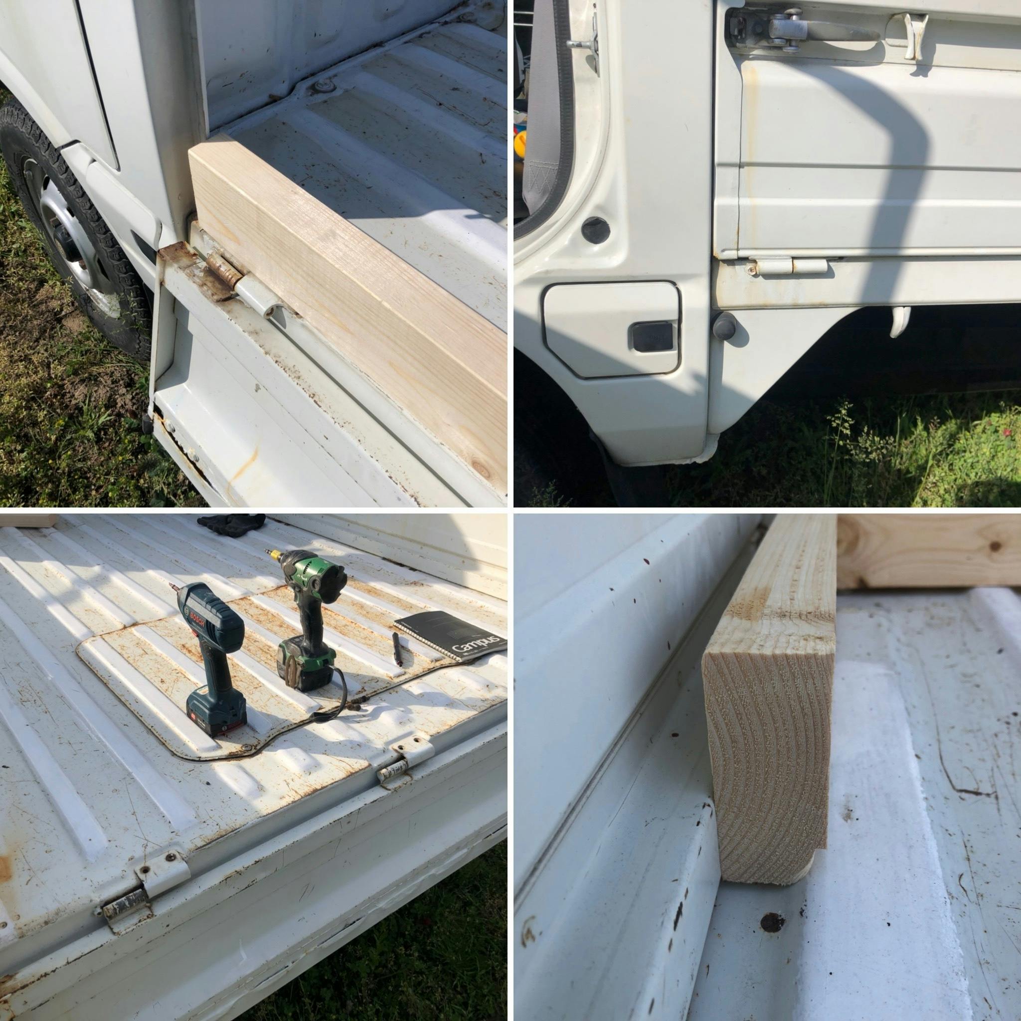 全然ボルトやネジが錆びついて回らない。本当は三方全部外したいのに、後ろのアオリさえ外せない。