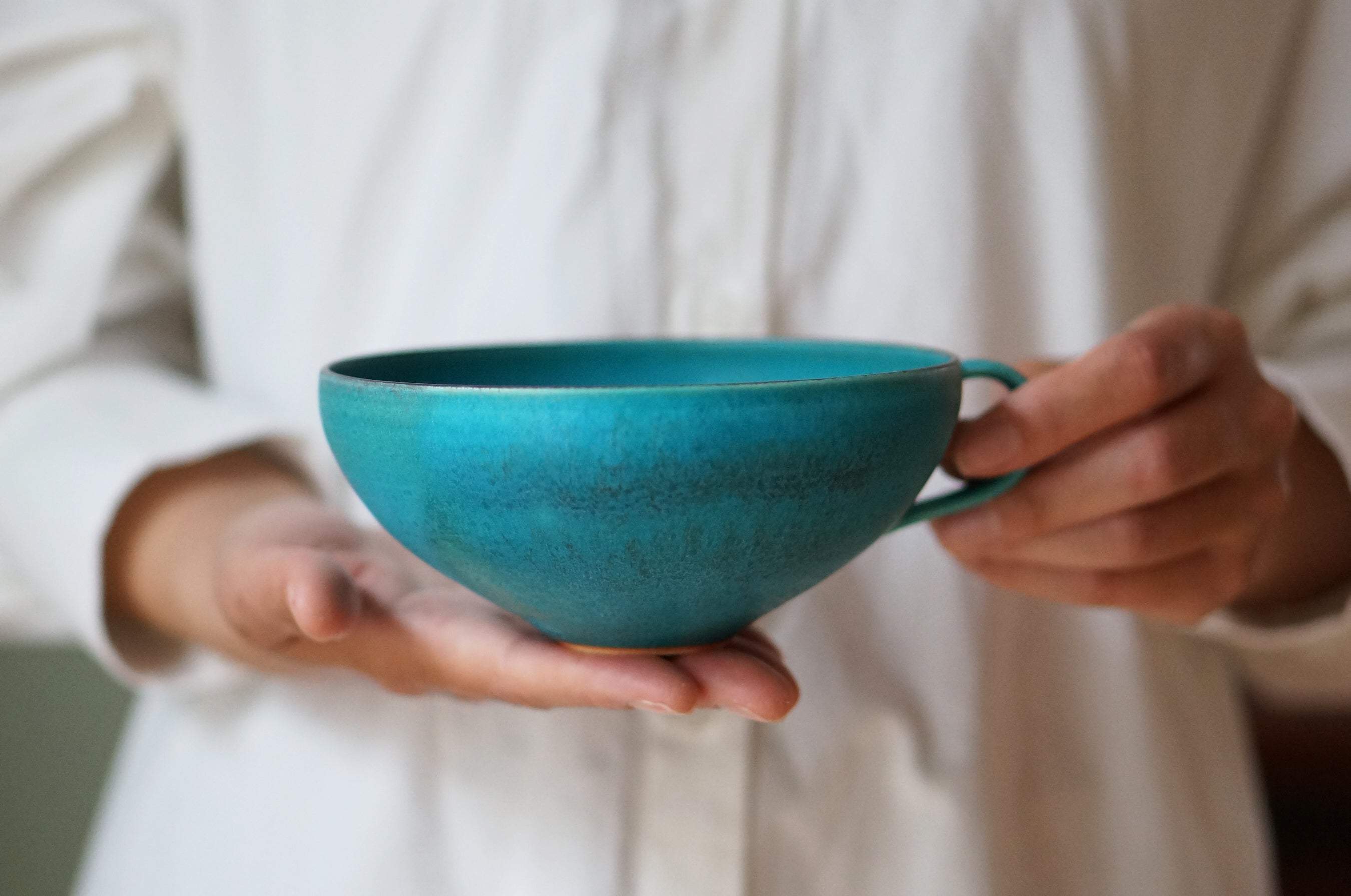陶芸体験と同じ色釉薬を使用し、熟練の職人が一つ一つ丁寧に手作りしています。うつわを持った時の「軽い!」という感動や、「世界に二つとない釉薬の景色」をお楽しみいただければ幸いです。